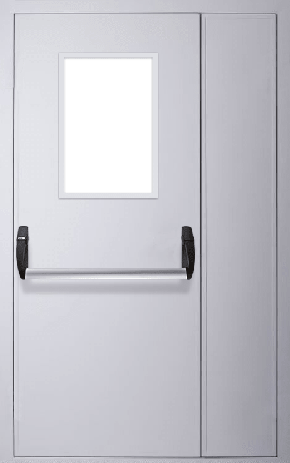 Полуторапольная противопожарная дверь «Антипаника» со стеклом (RAL 7035)