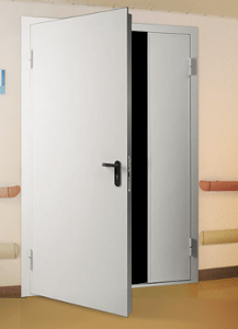 Толщина стального листа глухих дверей – 1,2 мм. Створки надёжно фиксируются. Направление открывания створок зависит от особенностей планировки и требований пожарной безопасности. В общественных учреждениях с большой посещаемостью двери открываются строго наружу, по направлению к выходу, что ускоряет эвакуацию. Вы можете заказать изделие с различным вариантом и цветом отделки: окрас нитроэмалью или покрытие порошковым напылением.