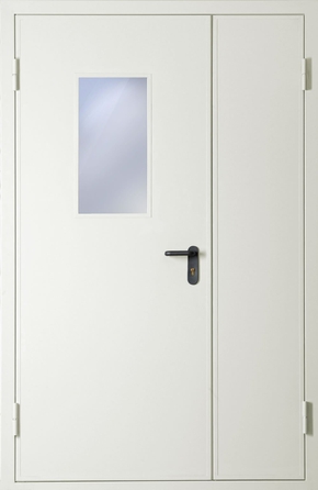 Полуторапольная противопожарная дверь со стеклом EI 60 (RAL 9016)